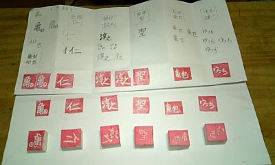 今日ね、学校で習字の時間にハンコを作ったんだ